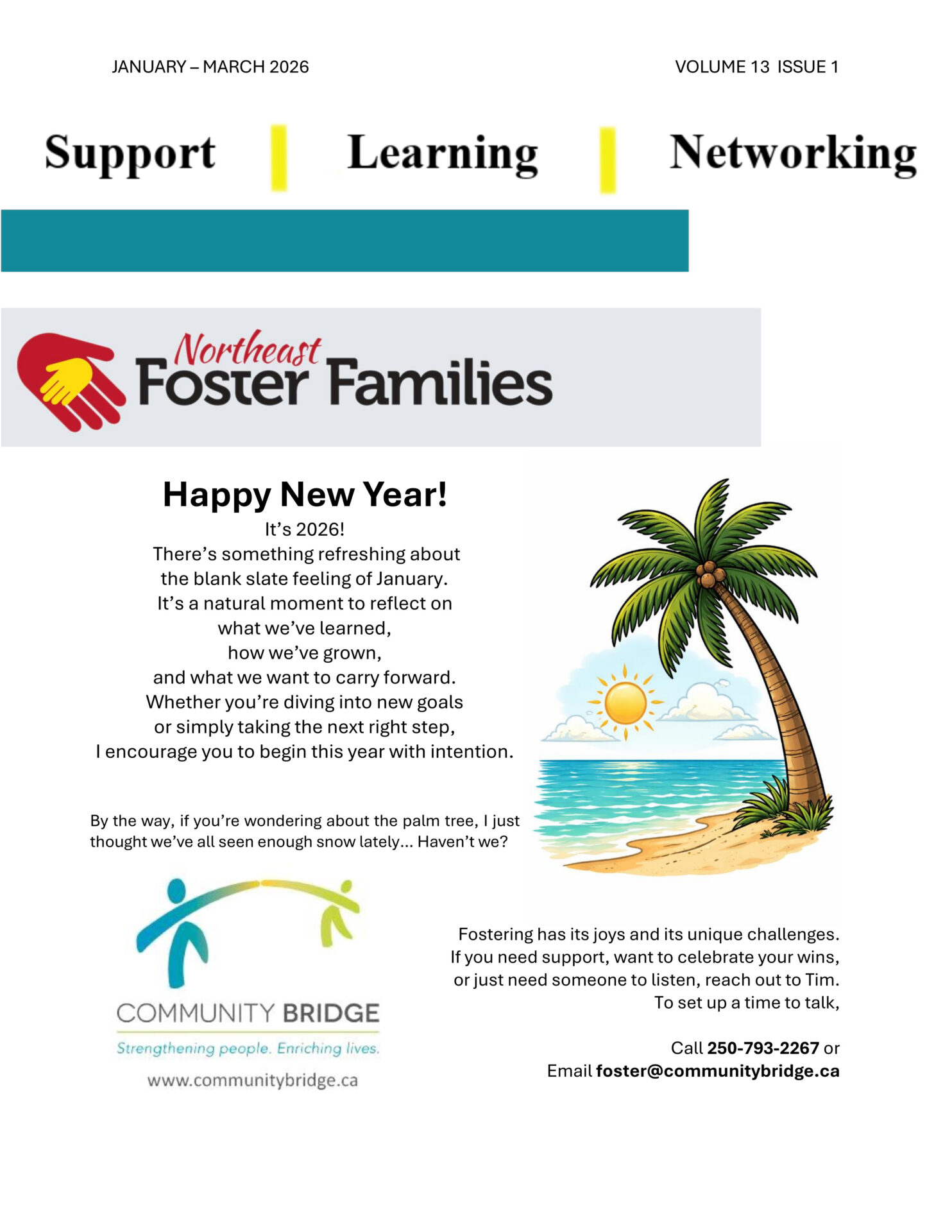 To receive a paper copy of our newsletter, you can subscribe to our mailing list by emailing Foster@communitybridge.ca