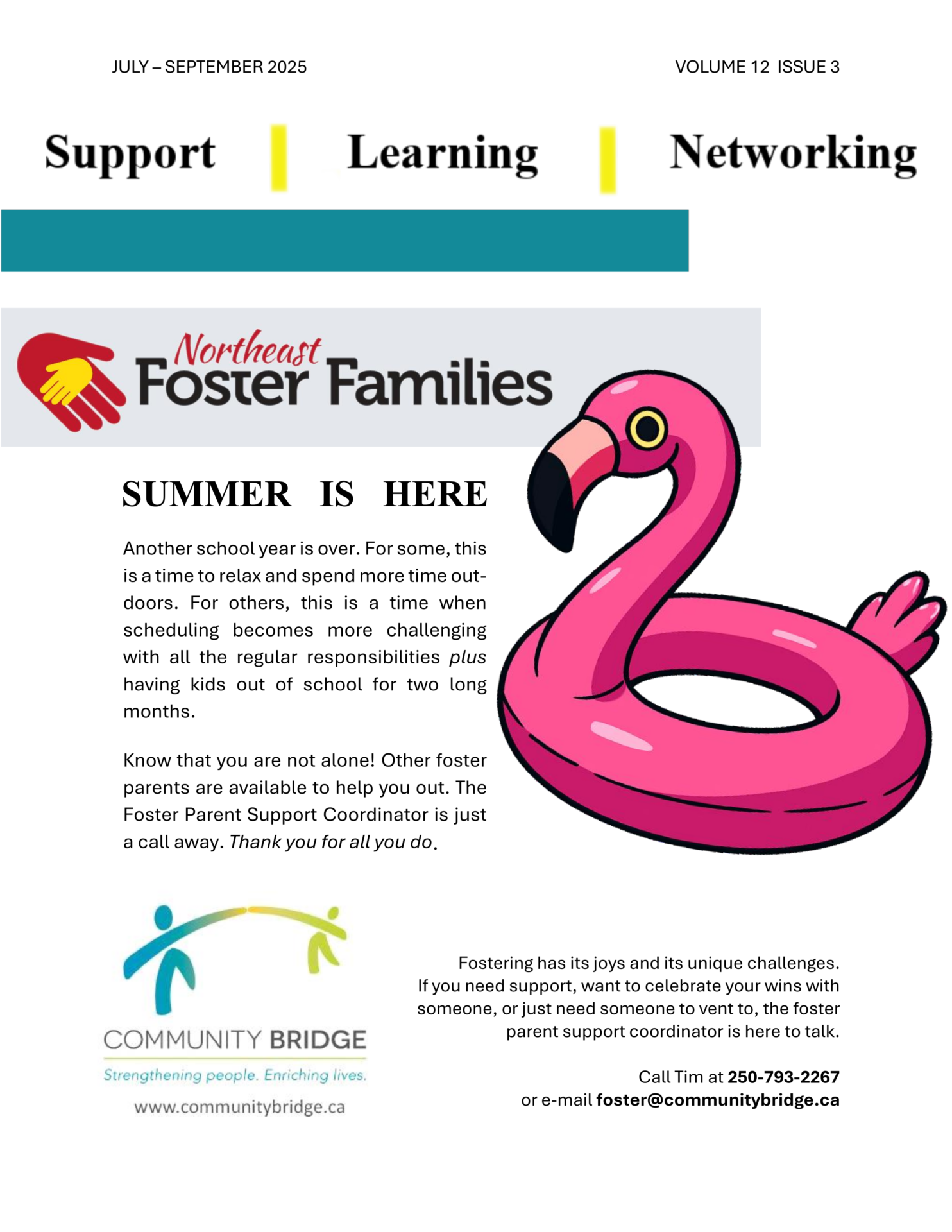 To receive a paper copy of our newsletter, you can subscribe to our mailing list by emailing Foster@communitybridge.ca